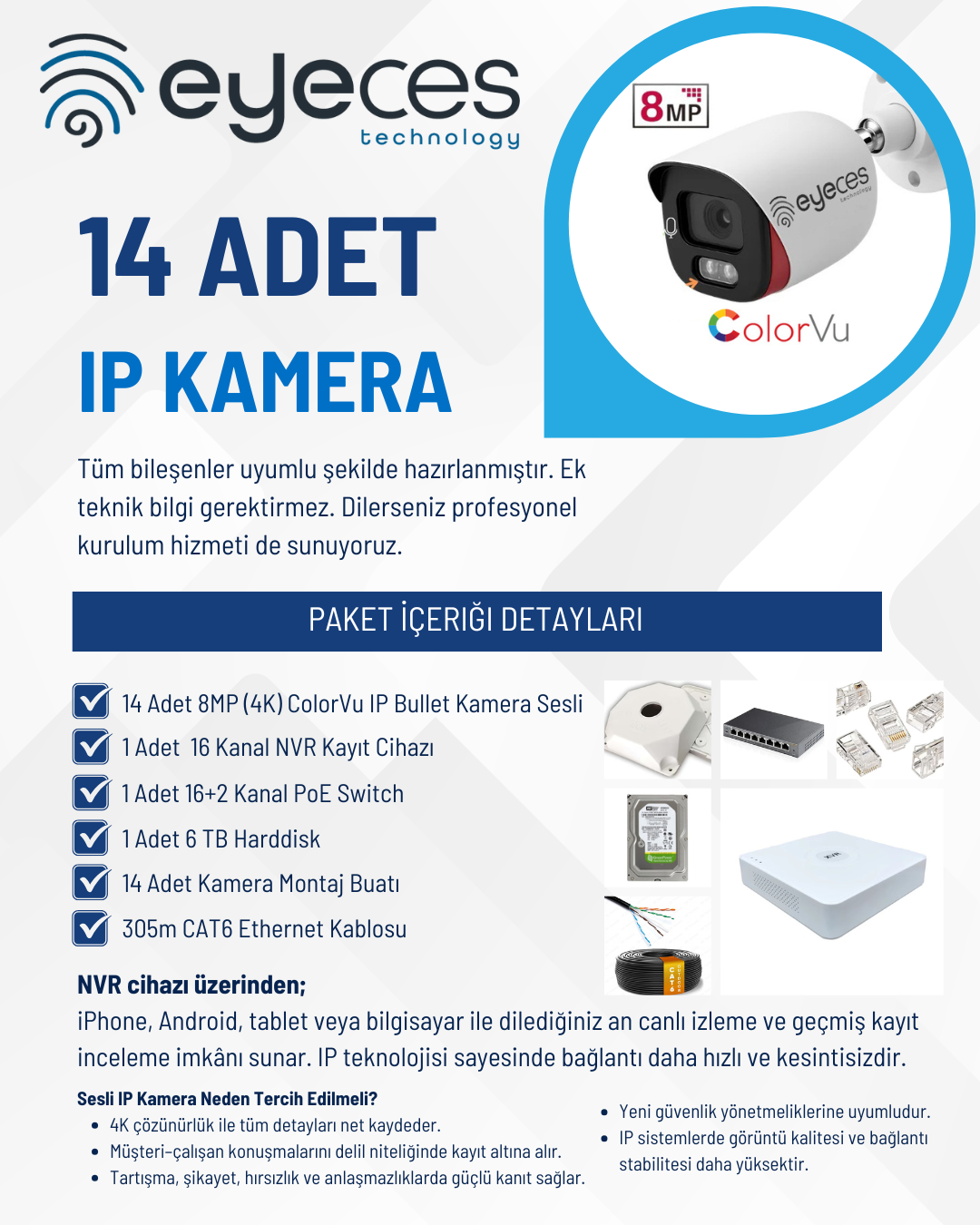 - 14× 8MP (4K) Sesli IP Kamera